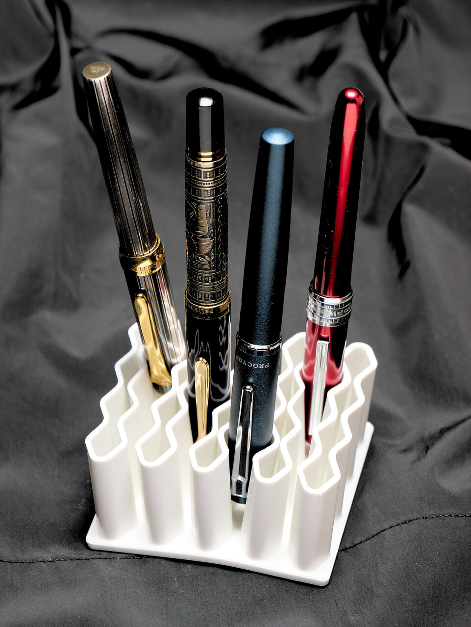 万年筆は革のペンケースにいれていたが在宅勤務なのに持ち運び用のペンケースはなんだか不便だし、このまえ買ったプレジールの置き場所もないのでネットで検索してみたら百均の斜めペン立てがいいらしい。このペン立ては会社で使っている人がいてきになっていたのだが、万年筆に最適というとこまでは頭が回らなかった。