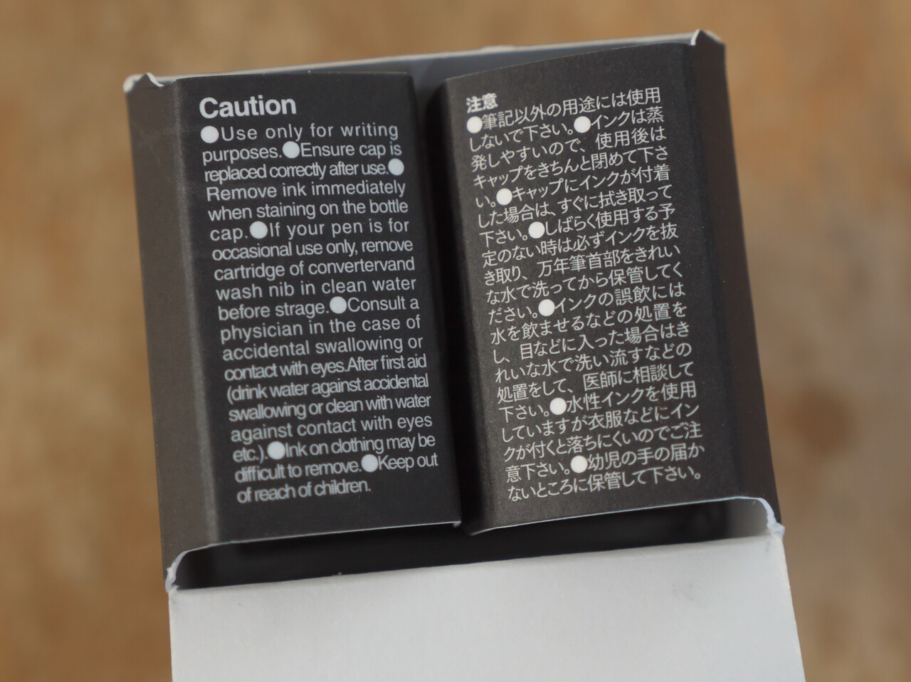 かなり昔にプラチナのカーボンインクをつかったことがあるが、当時つかっていた万年筆のペン先がかわきやすかったのもあってすぐ詰まってしまうし乾いたあとも手が擦れると鉛筆みたいに線がにじむのがいやであまり使わないで終わったが、この極黒はインクがさらっとしていて固着しにくそうだし、乾いた後に指でこすってみてもにじまないので普通の染料インクの感覚でつかえそうだ。