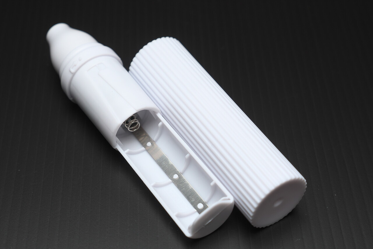 電池は単3 x1。ニッケル水素電池をいれてみたらモーターが回らなかったので、電圧の関係だろうか1次電池専用っぽい。パッケージにも2次電池は使用禁止とかいてあった。