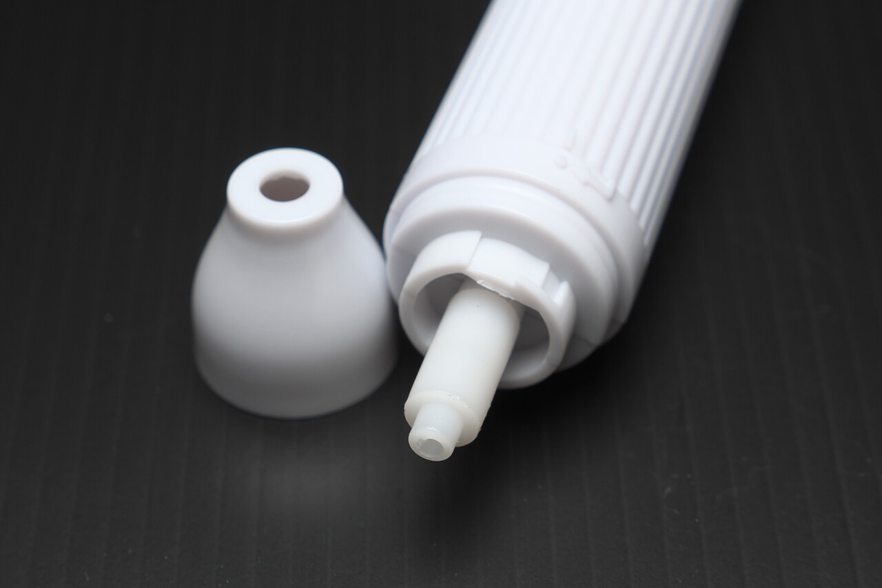 注意書きに「アセトンを含む液体が付着した場合、劣化する可能性がありますのでご注意ください」となめたことが書いてあるが、しらべてみるとアセトンに強いプラスチックはナイロン(PA)・◎テフロン(PTFE)・塩素化ポリエーテル(CP)・◎フェノール(PF)・フラン(FF)・キシレン(XR)・ジアリルフタレート(DAP)くらい。ポリエチレンは△でちょっと弱い感じ。製品価格からするとしかたないのかも。