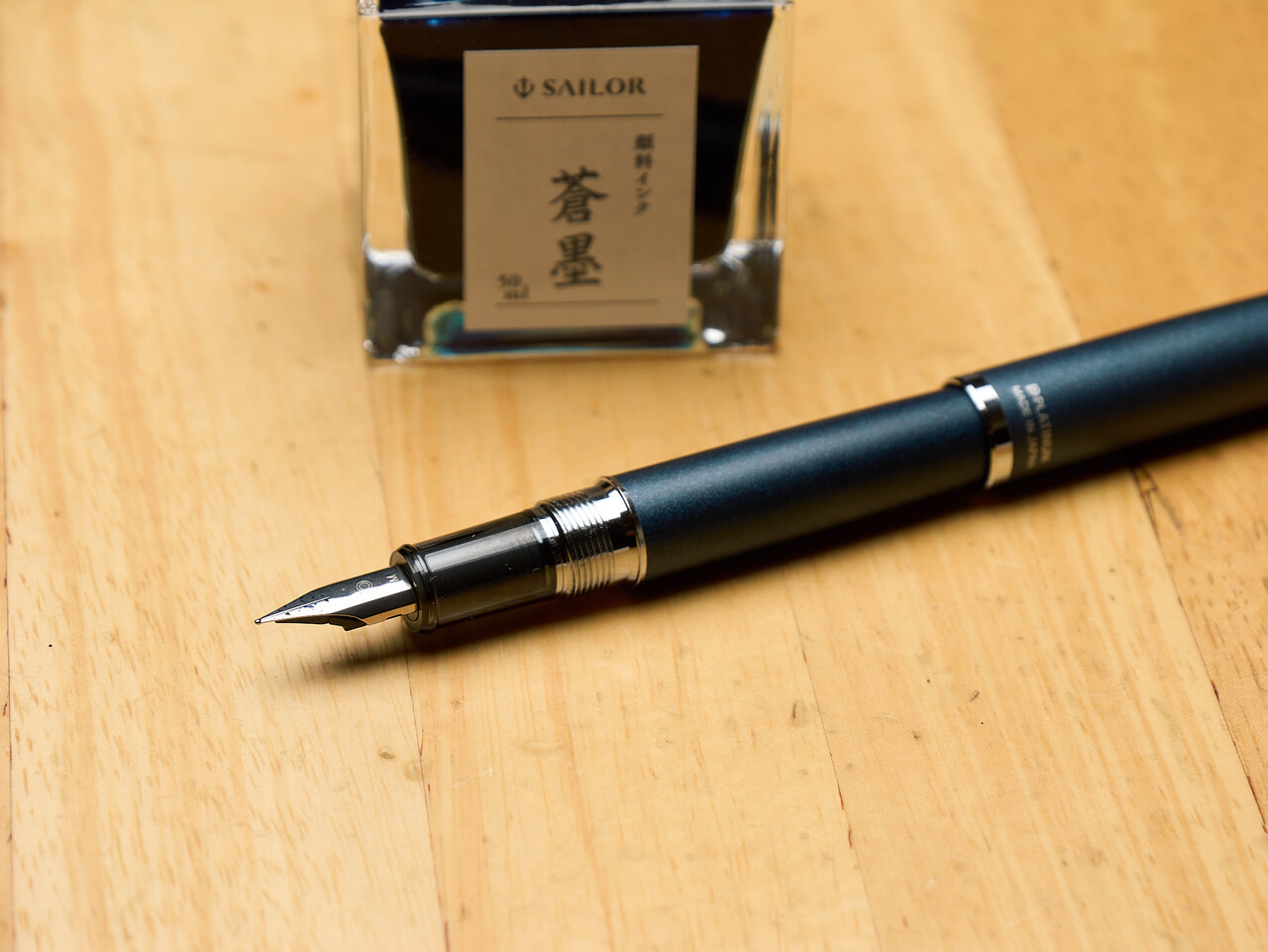 インクはまだ開封できてなかったセーラーの蒼墨をいれた。