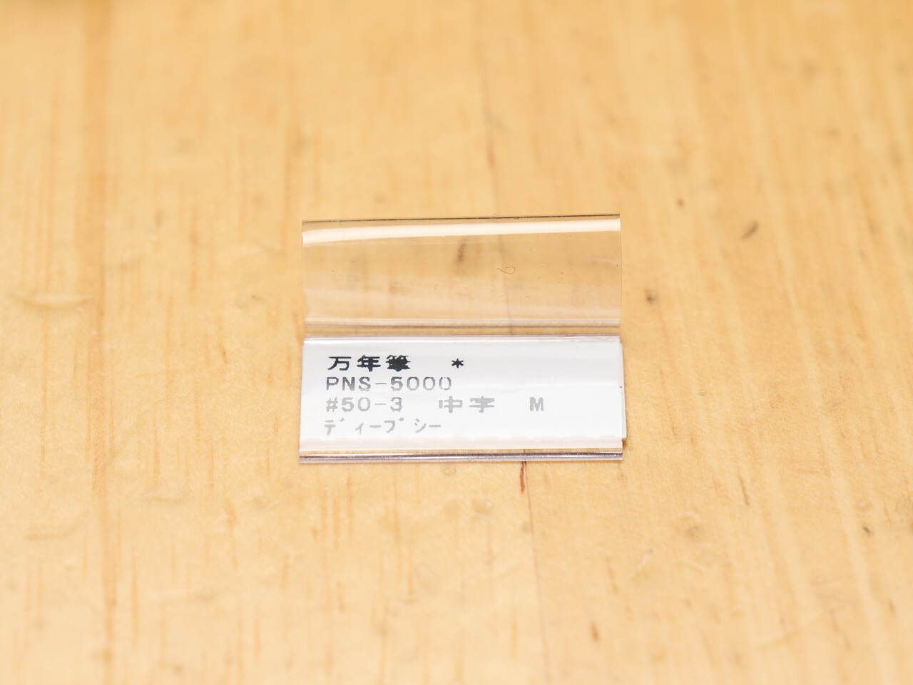 万年筆のクリップ部分に商品札がひっかけてあった。これが公式のものなのか店独自のものかはわからん。
