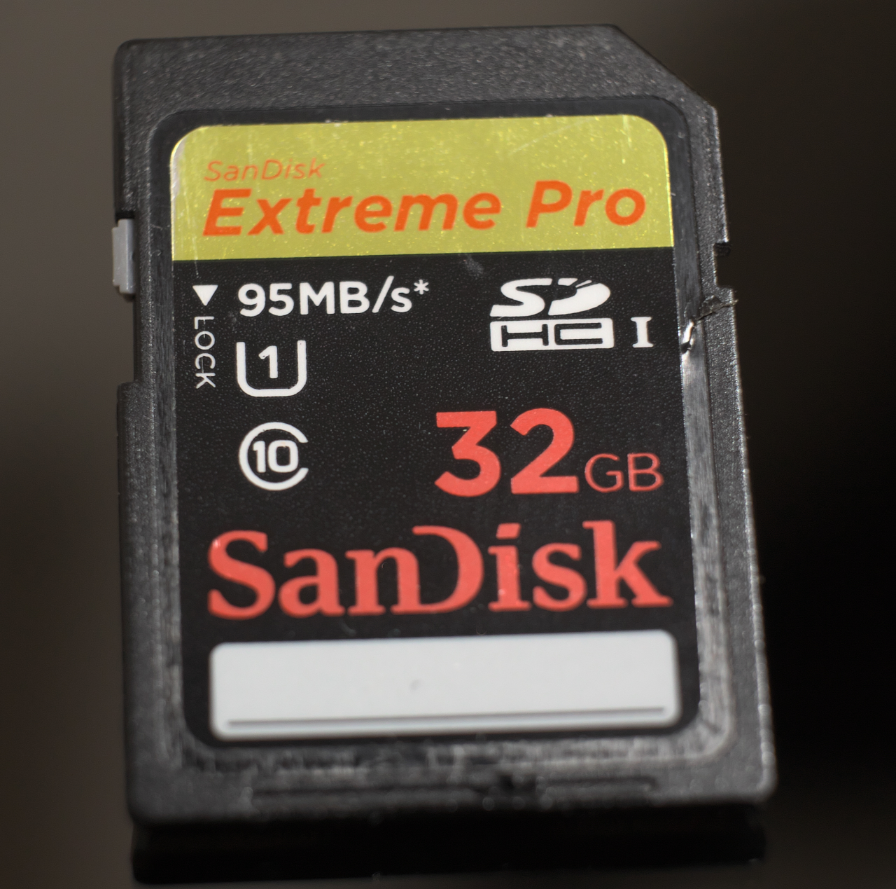 GH4にいれてつかっていたSDカードSandisk ExtreamePro SDHC UHS-I 32GB、1枚は書き込み禁止スイッチがもげて、